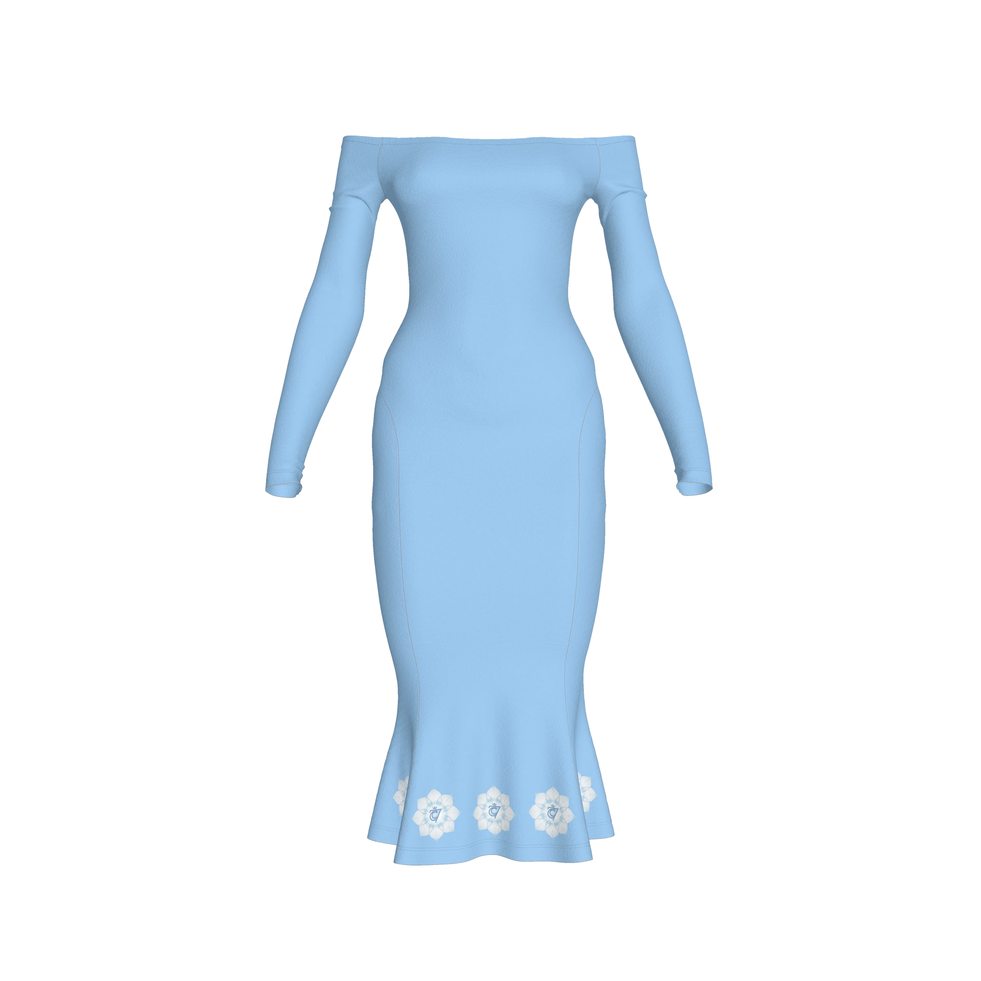 The throat chakra is the center of communication, truth, and self-expression. Located at the throat, it empowers you to speak with clarity and authenticity while also listening deeply to others. When balanced, it supports confidence in expressing your voice and living in alignment with your truth. Let your voice soar and expose your true expressions by wearing this beautiful off-shoulder dress to remind your subconscious mind that your throat chakra is balanced and aligned.